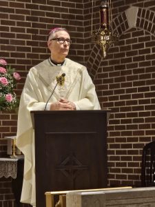 The Carmelites typically invite a Carmelite priest to celebrate the Novena; however, this year the guest priest had a last-minute surgery, so the nuns instead invited diocesan and religious priests from throughout the area including Bishop Mark; Father Aron Maghsoudi, Pastor of All Saints Parish in Boswell, Holy Family Parish in Hooversville, and Our Lady Queen of Angels Parish in Central City; and Father Stephen Mary Waruszewski, TOR, Director of Campus Ministry at Saint Francis University, among others.
